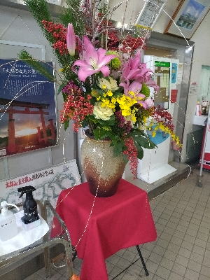 プール棟に入れておいた桜が咲きました。玄関ロビーに移しました。