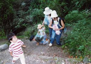 | 下の駐車場に車を置いて(9:30集合)登頂開始9:40 登りきるのに約1時間。途中ぐずったり歩かなかったりいろいろだったけれど、時々抱っこもしながら協力しあって登りました。登山道は木々に囲まれていて涼しく9月とは思えない気持ちよさ。小さな小川に手を突っ込んだり、石ころを拾いながらだま?しだま?しなんとか登り切りました。上の観音様の断崖を喜んで歩きます。お寺の前でお弁当を食べて帰りの力を養おう。下りも一生懸命進んで、なんとか下へ到着!!親も子供も充実感いっぱいの一日。お母さんも子供もくたくたです。頑張ったね!!最初の活動はちょっとハードでした。解散13:30 ![]()