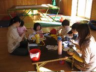 しばらく遊び、お腹もすいたので5組の親子でお昼を食べました。