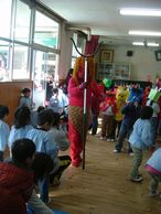 運動会の練習も始まってるらしくたま入れを一緒にさせてもらいました。新しい園舎で快適そうでした。