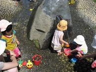子供達は、ぬれるのも気にせず洋服で、持ってきたおもちゃで水遊びを楽しみました。